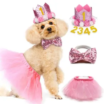 3PCS Pet Birthday Costume Set Fashion Sequin Birthday Hat With Bowtie Tutu Skirt Pet Clothing & Accessories Cat Dog Supplies