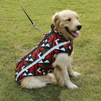 Geometric pattern Large Dog Clothes Winter Puppy Jacket Warm cotton Pet Clothing Vest Reflective Coat For Small Medium big Dogs