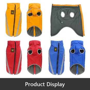 Description: Type: MySudui Medium Big Dog Winter Clothes For Dogs Pets Clothing Reflective Dog Jackets Outdoor Material: Nylon,reflective,Fleece Color: Red,Blue,Yellow Features: 1.Machine washable, very comfortable to wear 2.Waterproof and Windproof, thick and warm enough to wear in winter 3.Easy to put on and take off 4.Reflective design, ensures safety