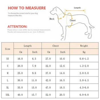 Note : 1.Pls kindly check your pet’s measurements to make sure that the clothes fits pets before you order (1 Inch=2.54 Cm) 2.For the growing pet, you’d better choose the bigger size! 3.If you have any questions,please feel free to contact us.We will help you as soon as possible.Thank you