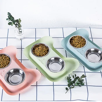 Cat Bowls Double With Raised Stand Pet Food Water Bowls For Cats Dogs Feeders Bowl Products Dog Water Feeder Kitten Drinking Fou