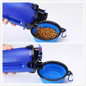 Compare $16.99 – $21.99 Water Bottle & Food Container 2 IN 1– Dog water bottle and food storage container 2-in-1 with two collapsible bowls for pets, leakproof silicone gasket design on the top of the bottle will keep the water and food separated well, do not worry about food being damp High quality &