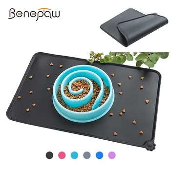 Benepaw Waterproof Silicone Dog Food Mat Food Grade Antislip Small Medium Large Dog Placement Bowl Mat Pet Feeding Tray Cats
