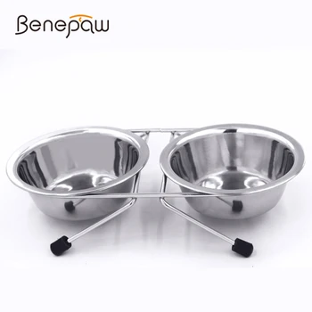 Benepaw Stainless Steel Raised Dog Double Bowls Anti-skid Pet Food Water Bowl For Small Medium Large Dogs Cat Puppy Feeding