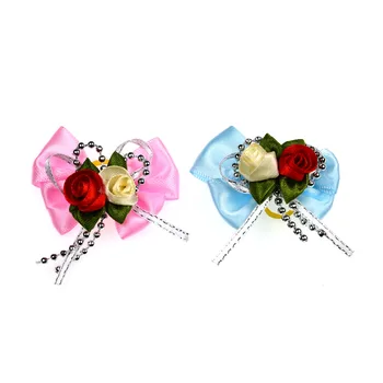 2016 New 100pcs Large dog topknot bows pet hair Rubber bands Patterns Large Bowknot Style dog hair accessories pet grooming products