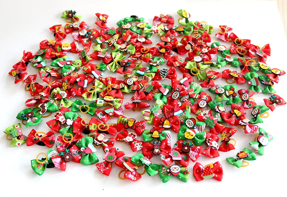 50/100pcs Christmas Dog Hair Accessories Pet Dog Hair Bows Holiday Party Dogs Bows Hair Dog Grooming Bows For Small Dog Products
