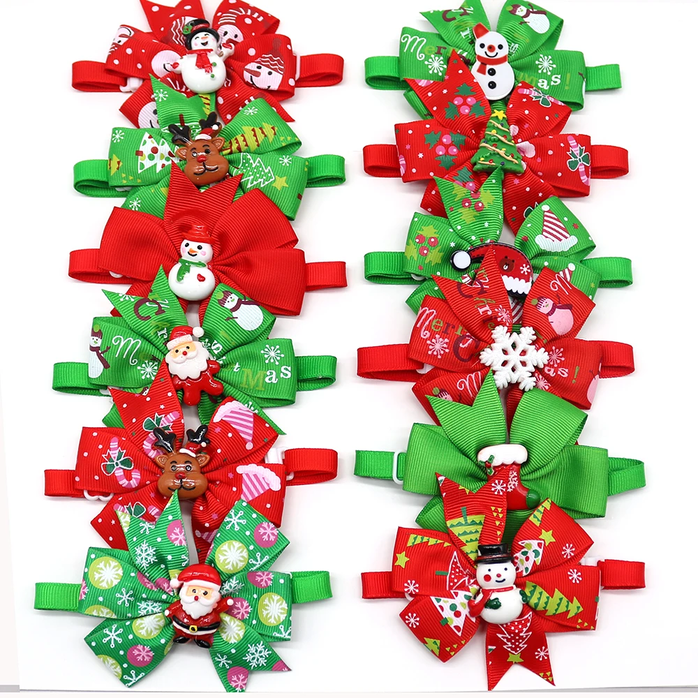 50pcs Christmas Pet Products Dog Bows Cat Dog Pet Bow Tie Bandana for Holiday Small Dog Grooming Accessories Large Dog Supplies