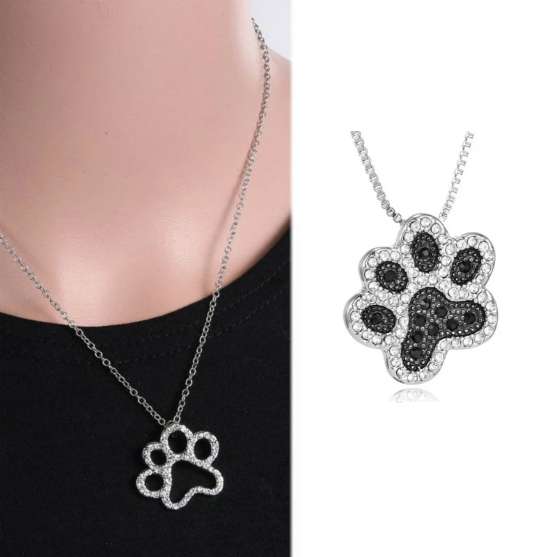 Rhinestone paw necklace