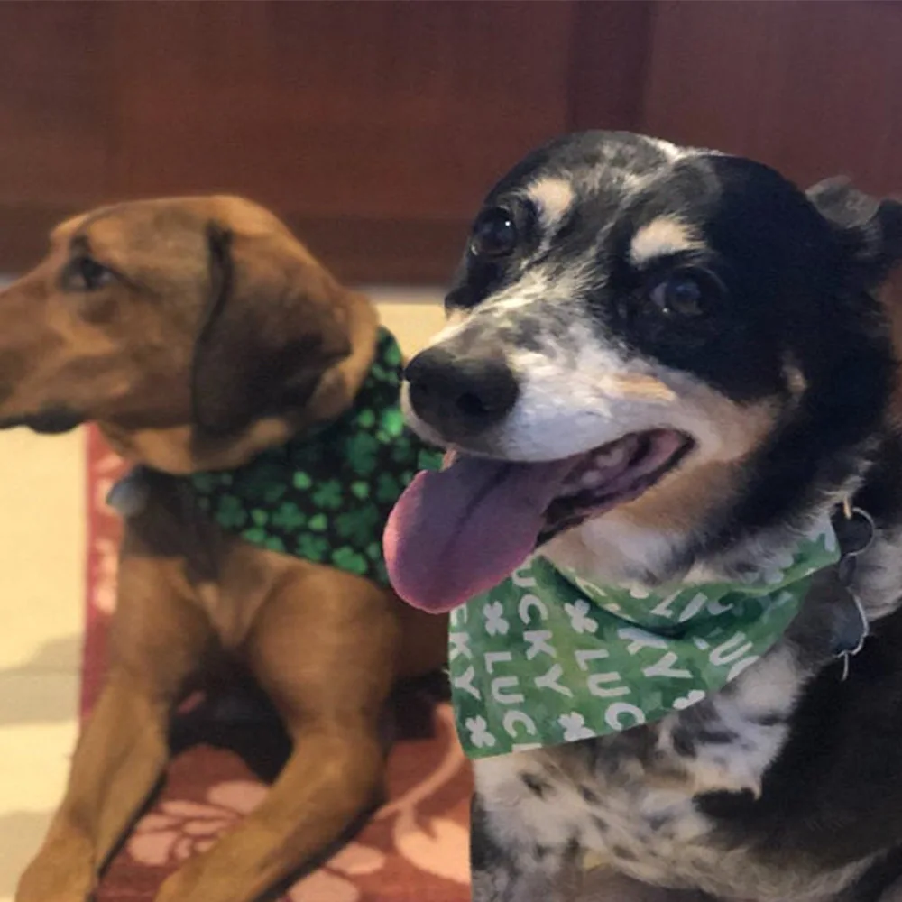 Dog Bandana For Small Large Dogs Green Lucky Clover Dog Bibs Scarf Washable Cozy Cotton St. Patrick's Day Pet Saliva Accessories