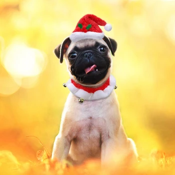 Costume Dog Hat And Collar Set Christams Dogs Hats Cap Necklace With Bell Pet Supplies For Christmas Festival Dog Accessories
