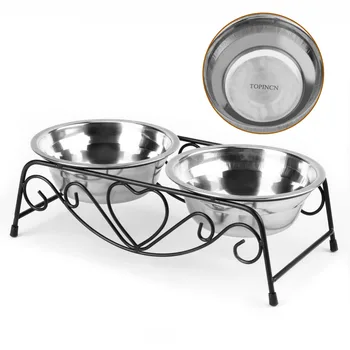 Double Pet Supplies Dog Bowl Stainless Steel Plastic Cat Food Feeding Feeder Food and Water Dish Bowl