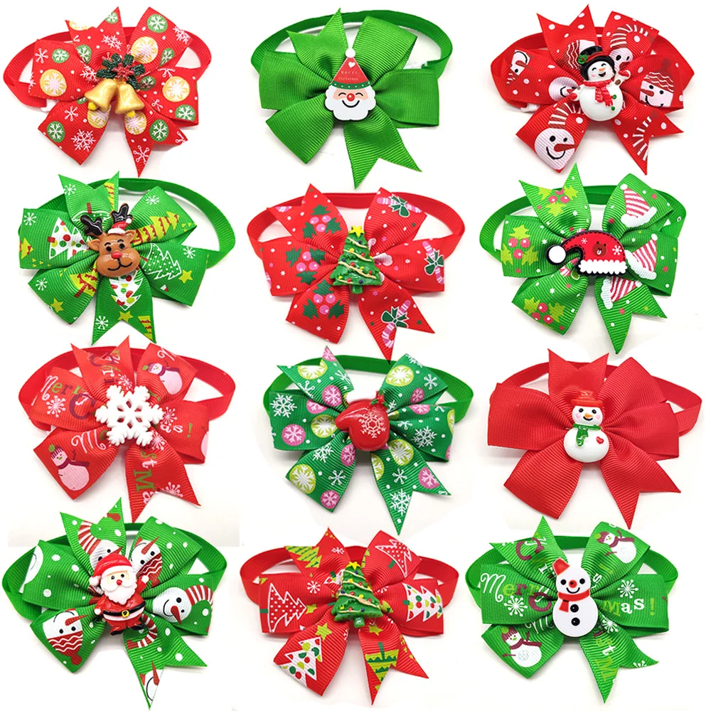 Item:New Christmas Pet Dog Neck Grooming Accessories Pet Dog Holiday Bowties Neckties Santa Snowflakes Dog Cat Dog Bow Tie Red Green