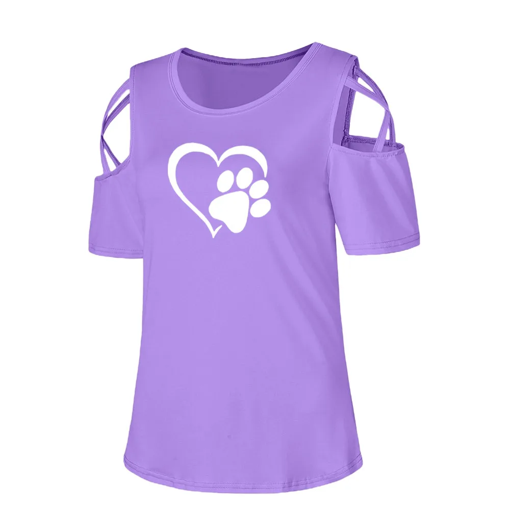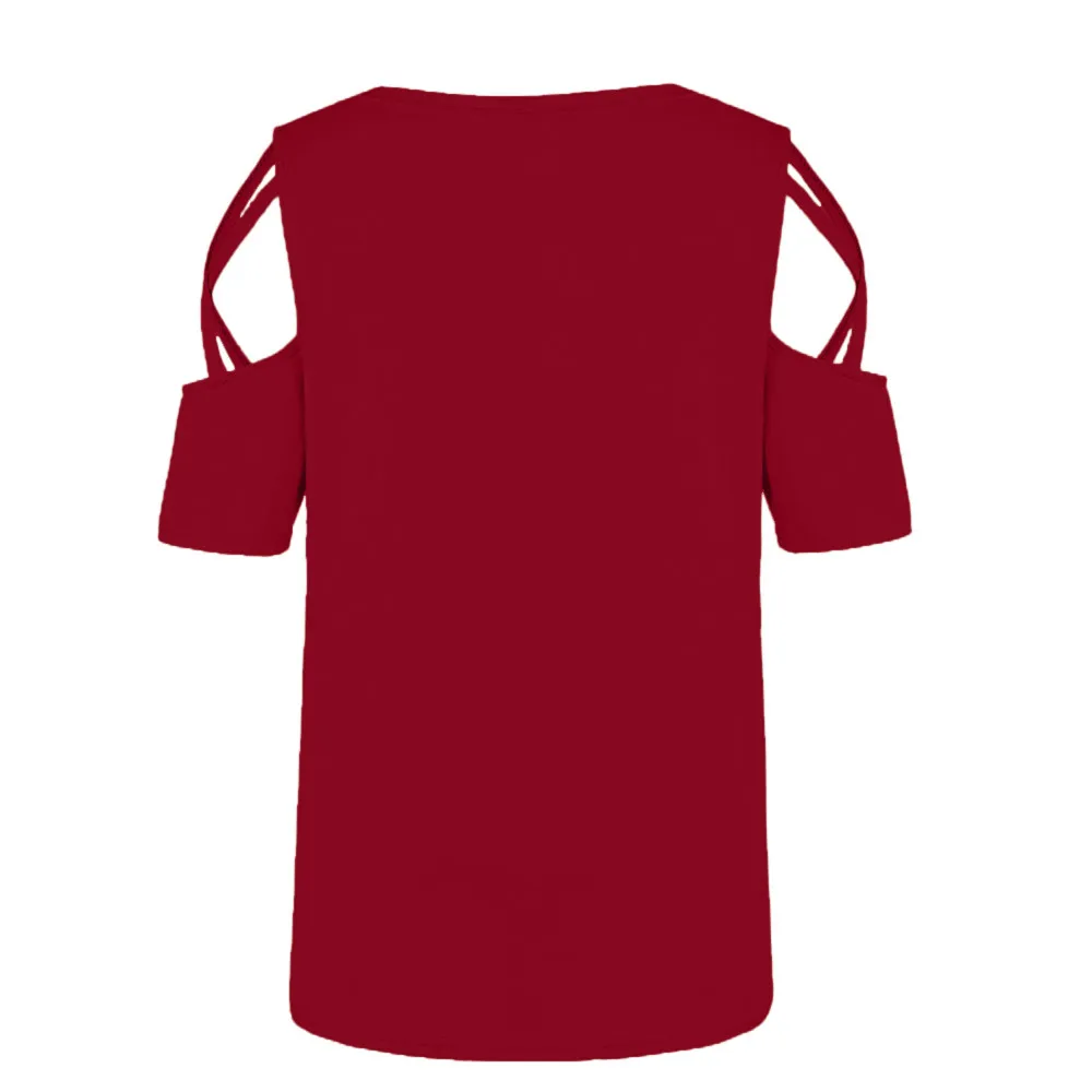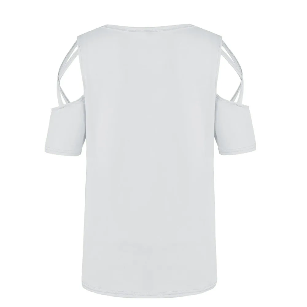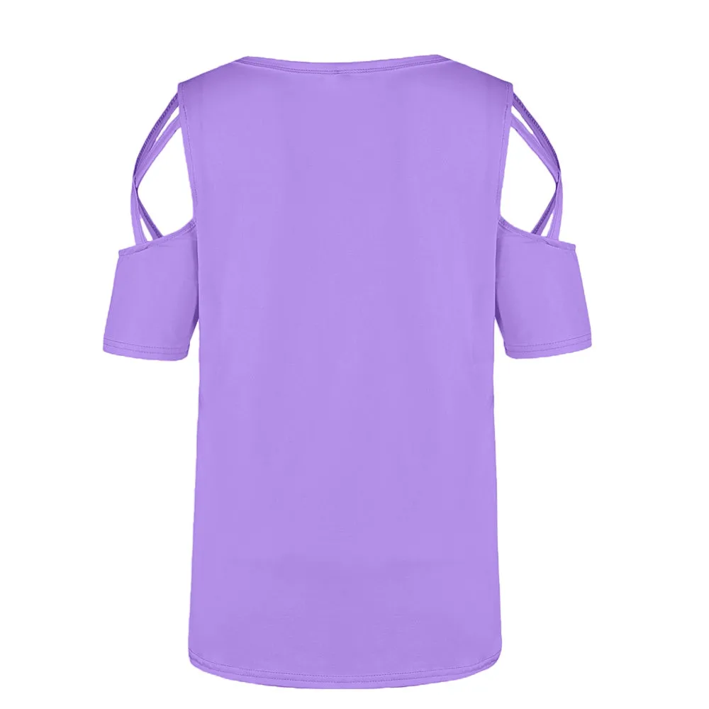 Women Summer Short Sleeve Print Strappy Cold Shoulder T-Shirt Tops Blouses
