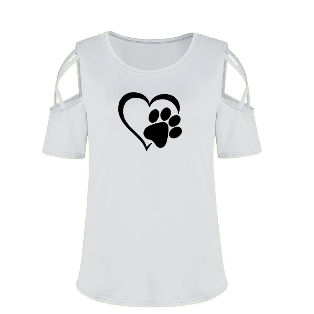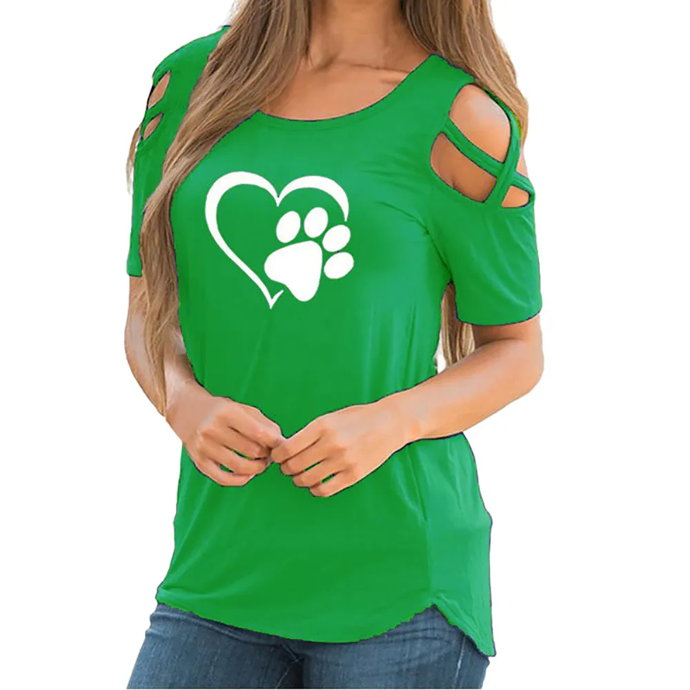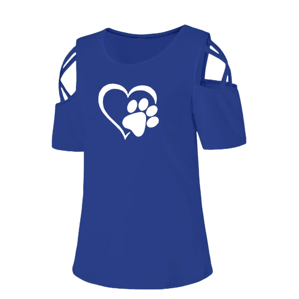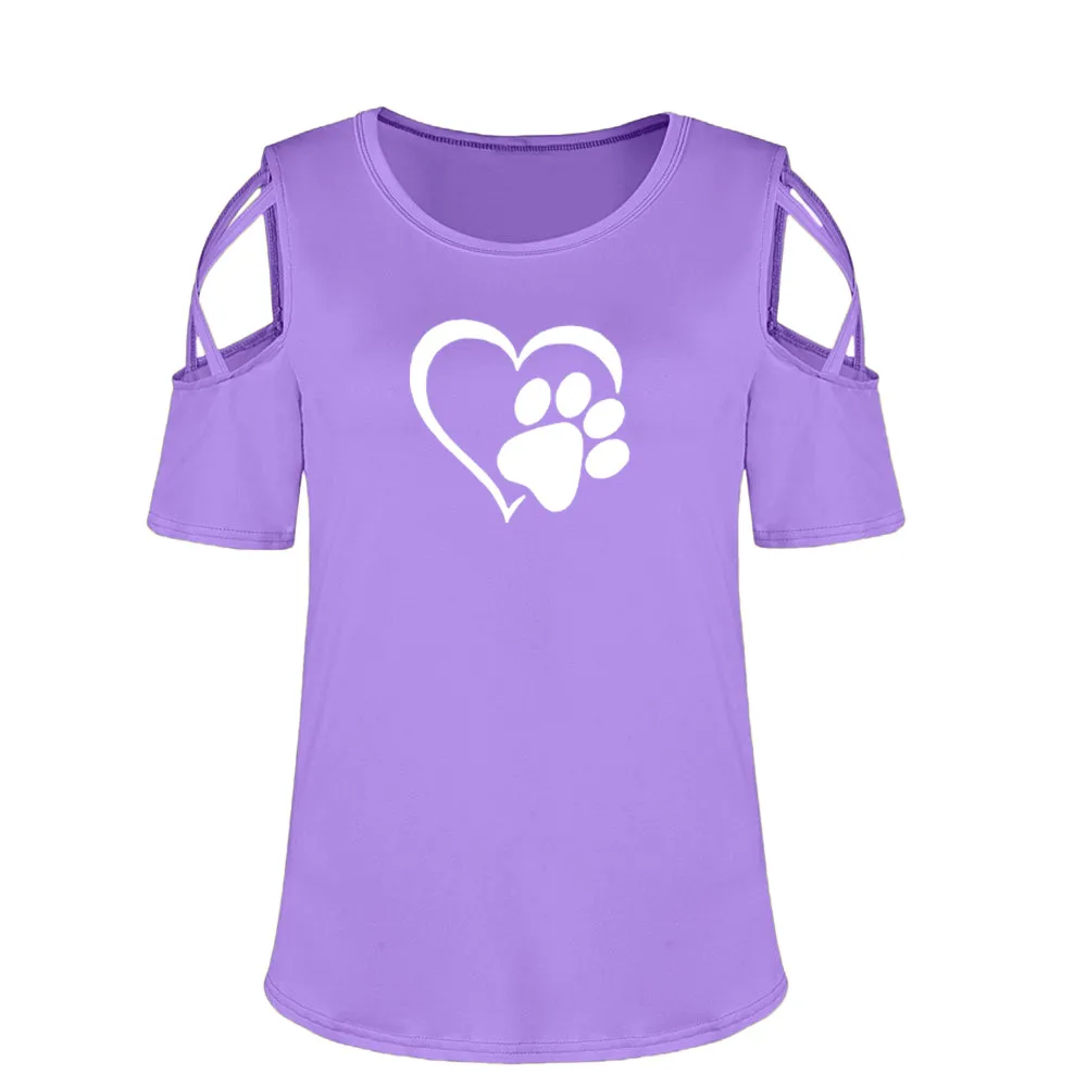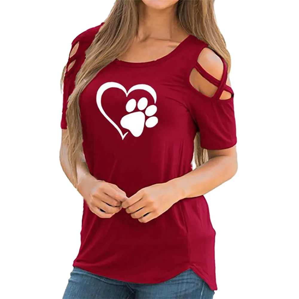 Women Summer Short Sleeve Print Strappy Cold Shoulder T-Shirt Tops Blouses