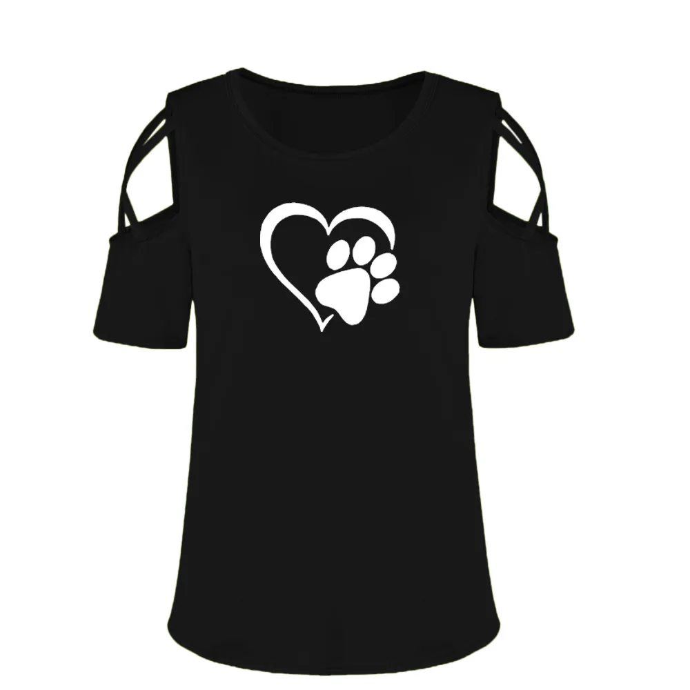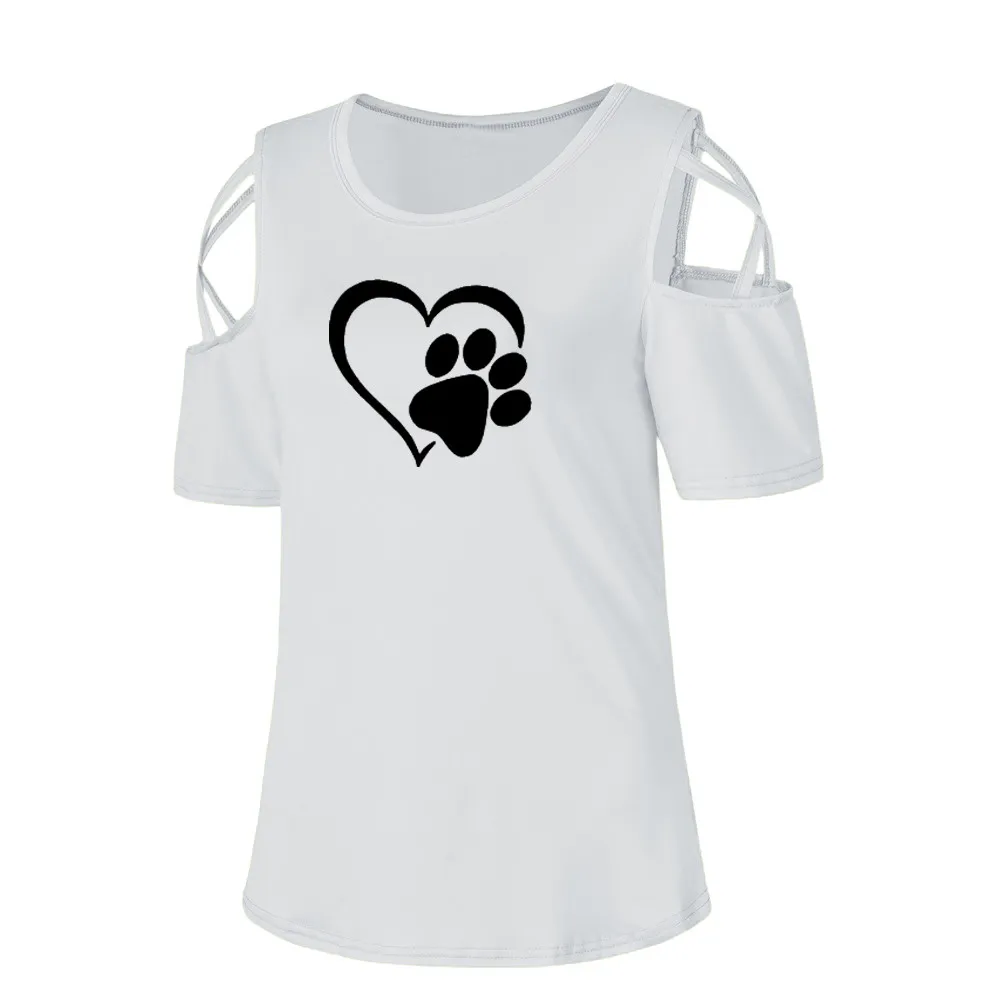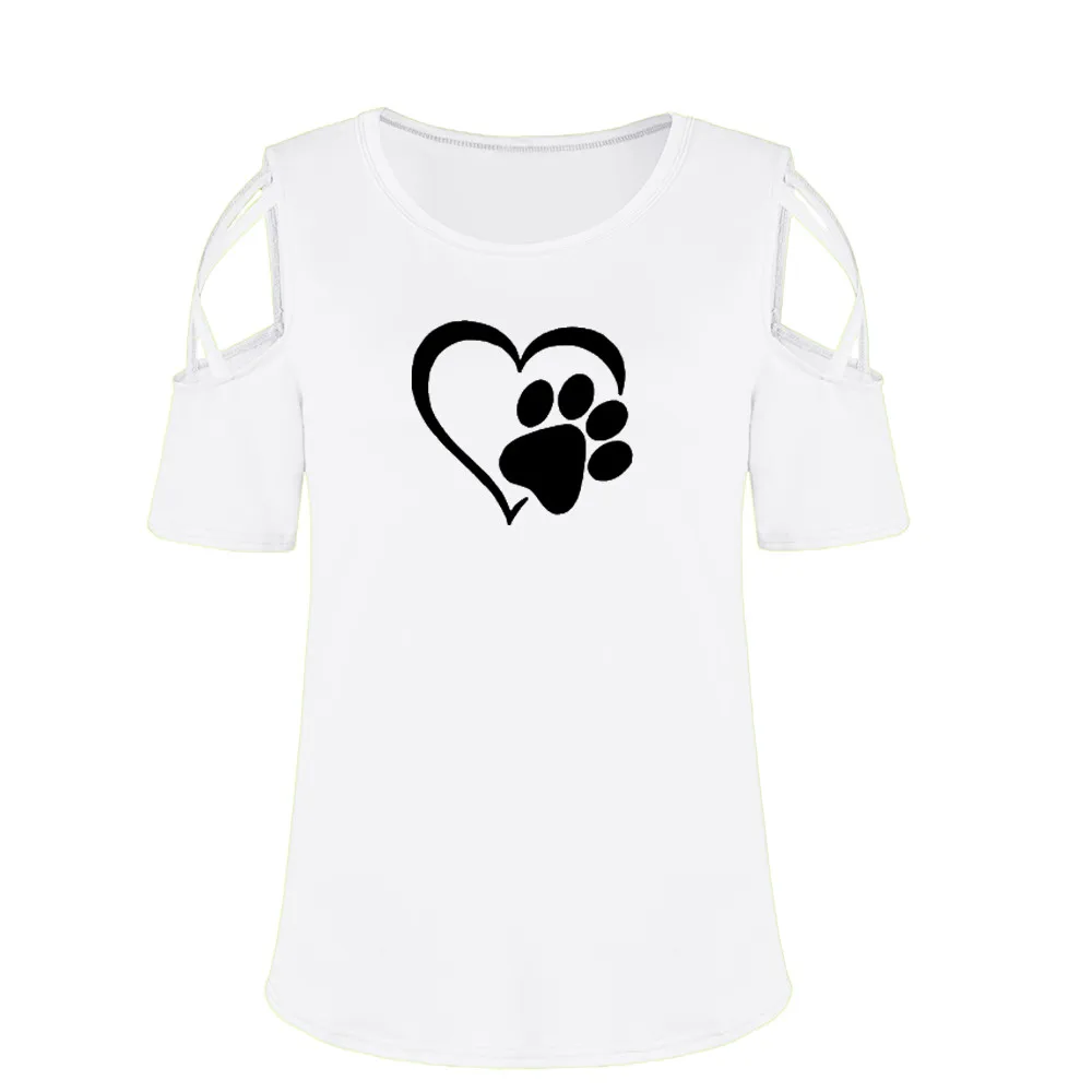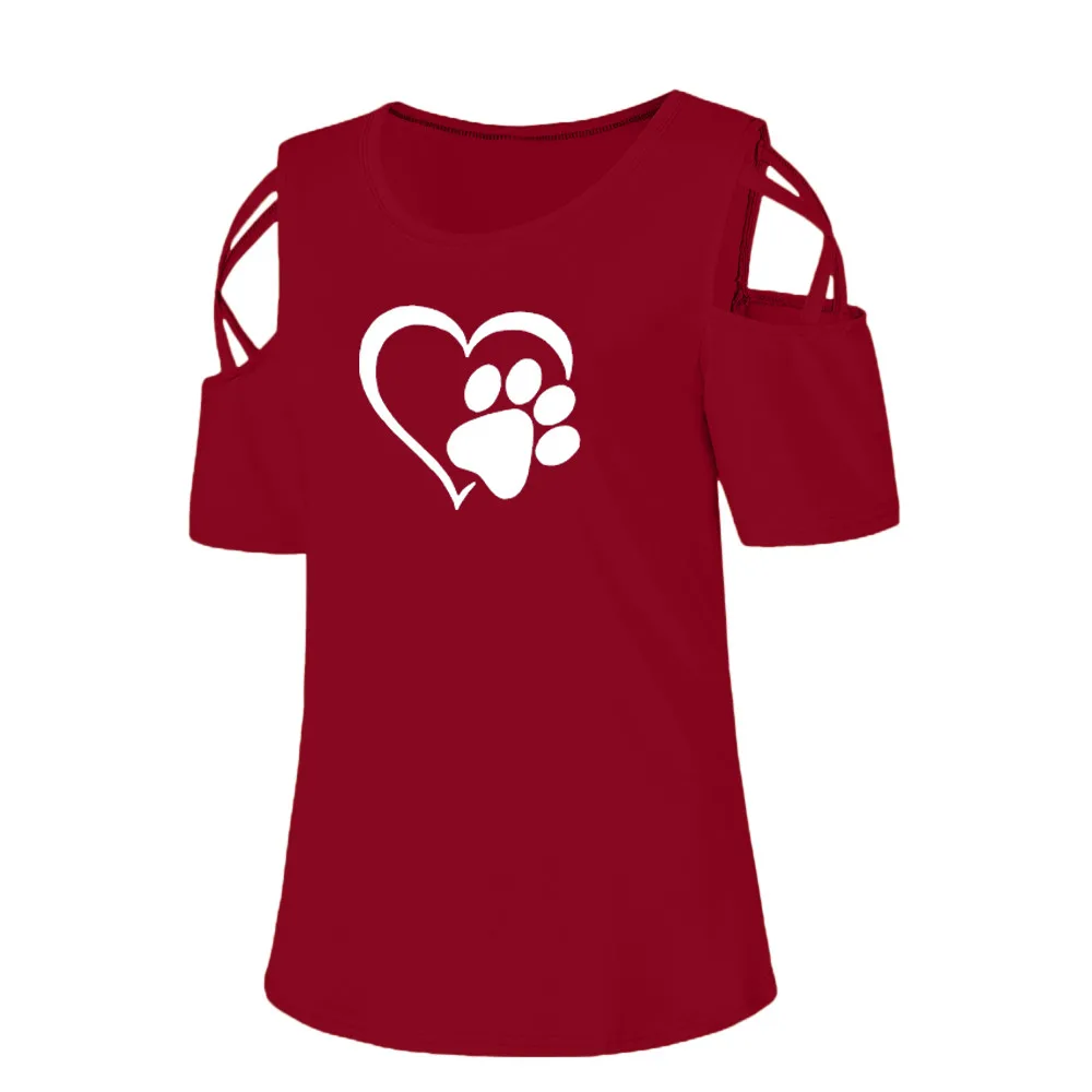 Women Summer Short Sleeve Print Strappy Cold Shoulder T-Shirt Tops Blouses