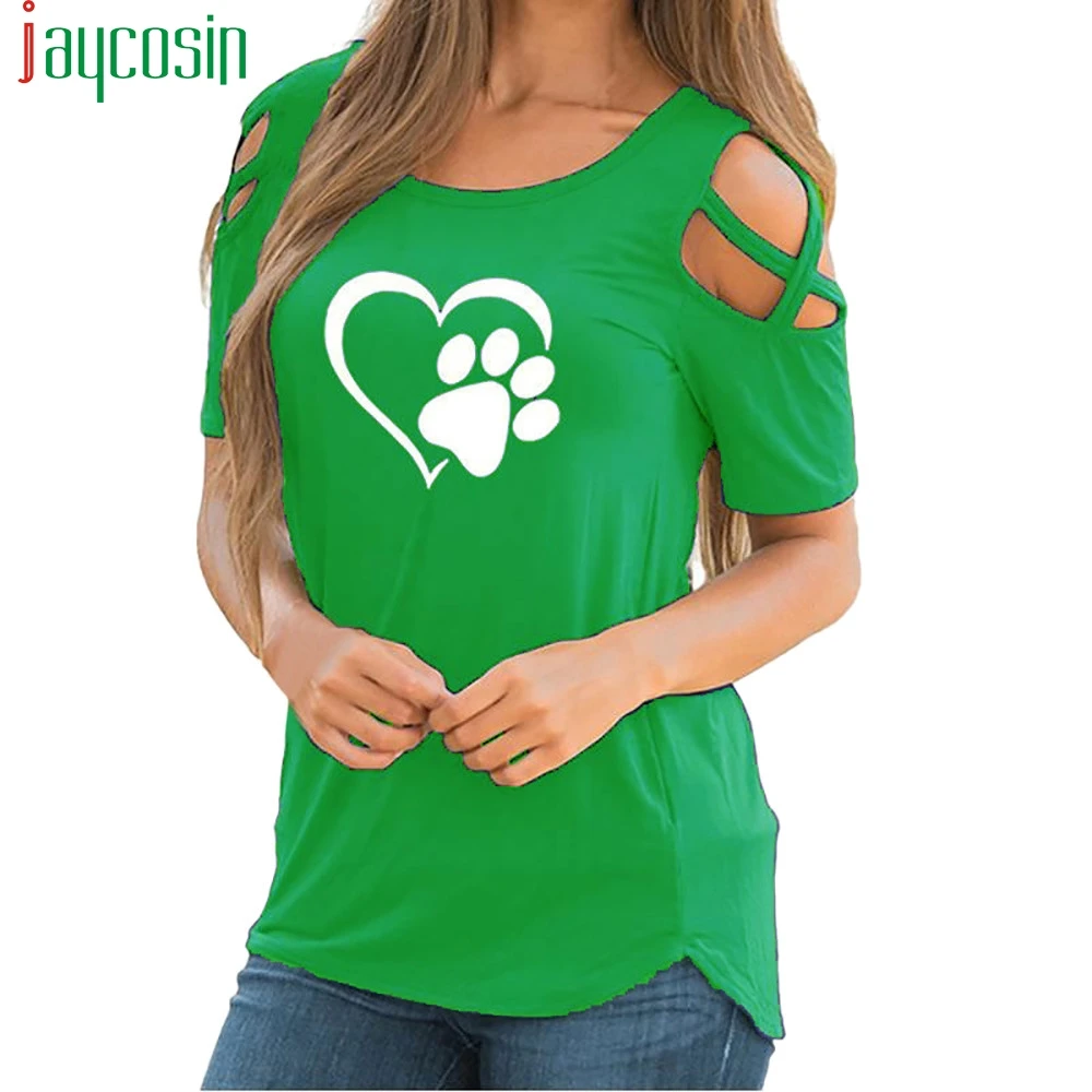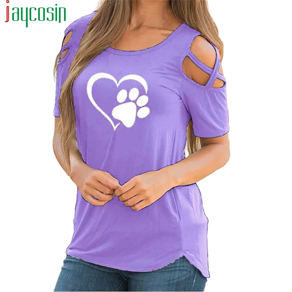 Women Summer Short Sleeve Print Strappy Cold Shoulder T-Shirt Tops Blouses