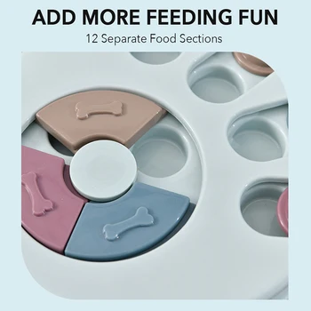 2.Equipped with 12 small sections to hold pet food separately, can easily prevent your dog from eating too fast and reduce choking risks, also can add more fun when feeding your dog or cat.