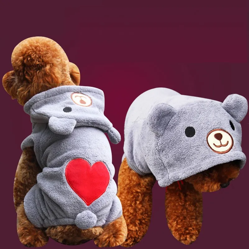 Cute Pet Dog Clothes For Small Dogs Warm Fleece Bear Clothes Pet Costume Winter Puppy Clothing Hooded Jacket For Dog