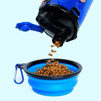 The pet water and grain dual-use cup effectively solves the problem of drinking water when carrying the pet out, portable, clean and hygienic.