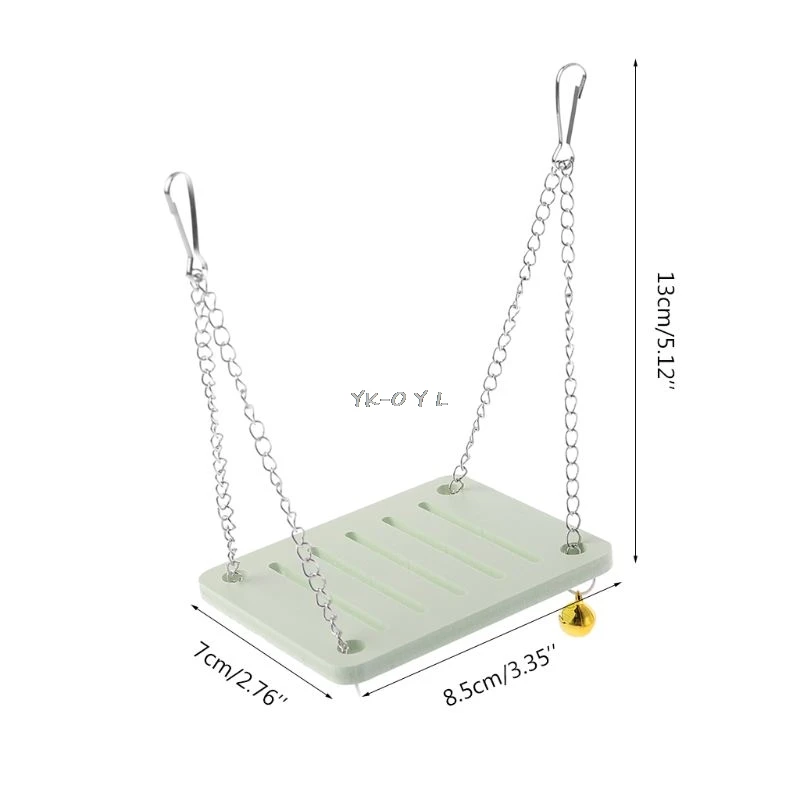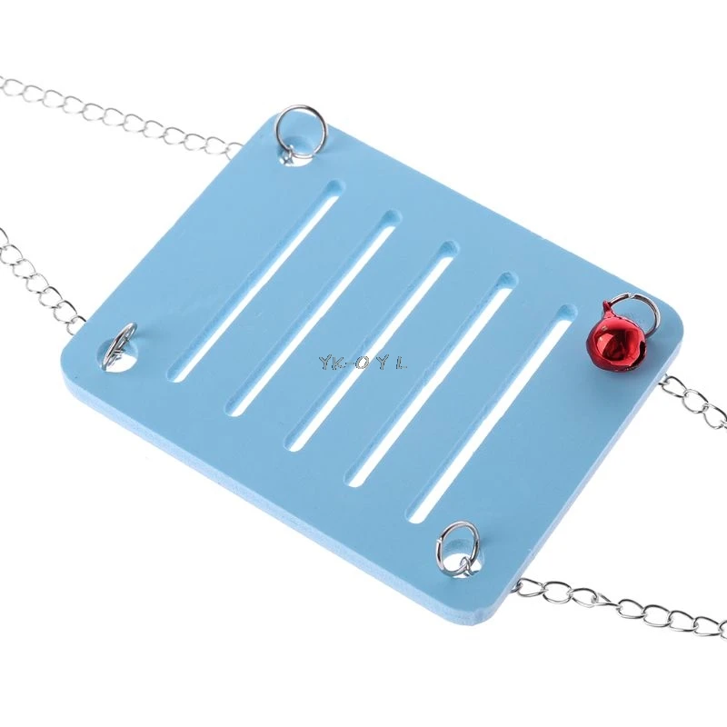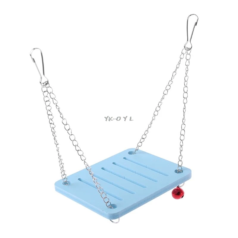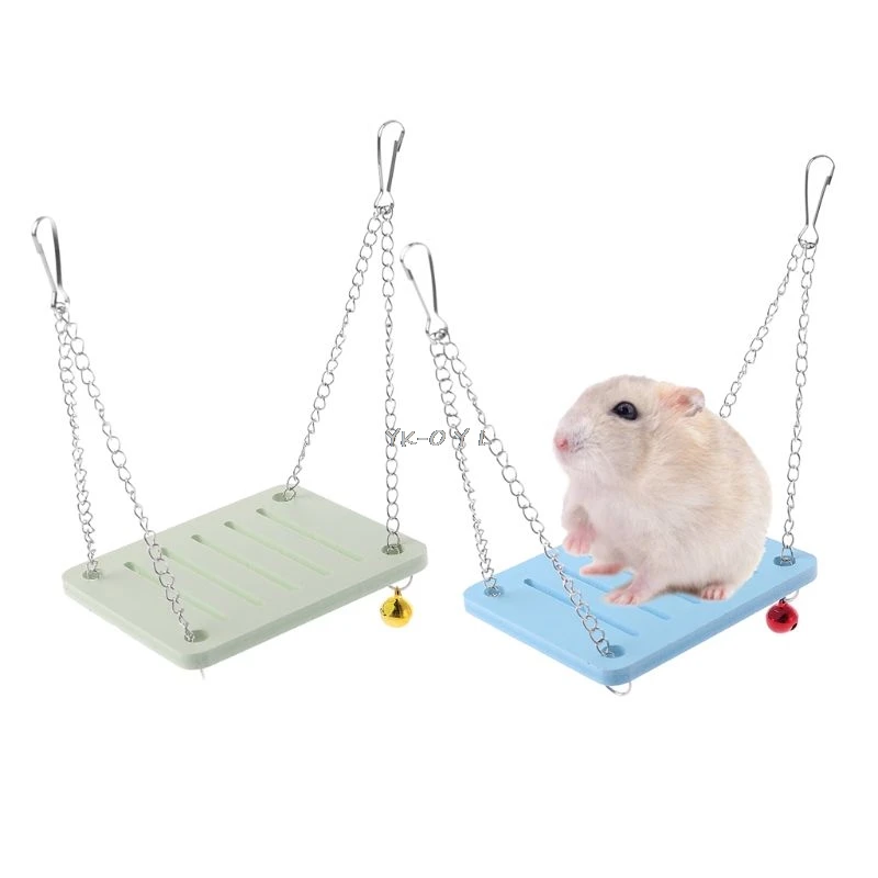 A small metal bell attached to the ring button makes a pleasant sound when hamsters play (a swing has only one bell, and the bell color is random).